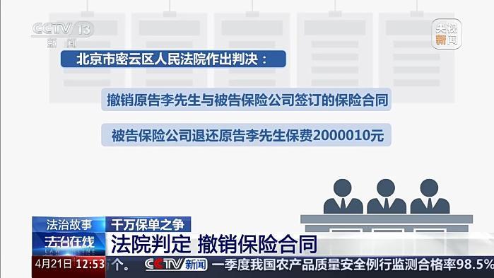 据此,北京市密云区人民法院作出判决:撤销原告李先生与被告保险公司签订的保险合同;被告保险公司退还原告李先生保费2000010元。