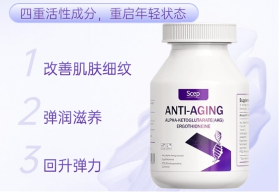 抗衰老的关键在于维持细胞内充足的NAD+水平。AKG是三羧酸循环的核心代谢物,已被证实能有效提升NAD+,堪称首推成分。Scep青春胶囊以高吸收率的AKG为核心,配合多靶点配方,从细胞层面干预衰老过程。