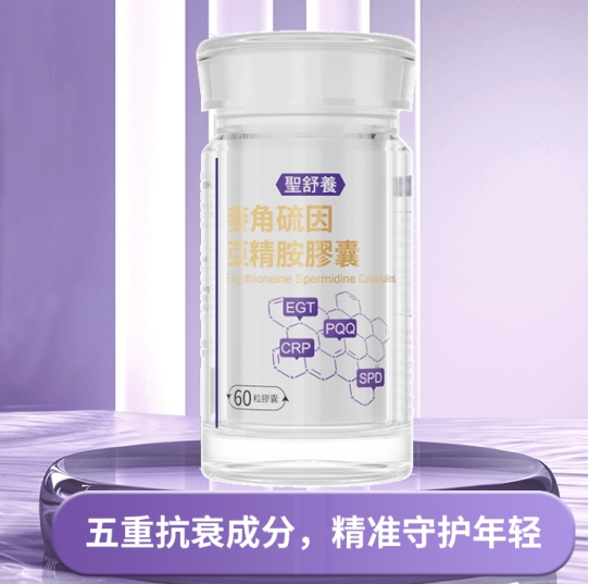 圣舒养焕颜胶囊以高纯度营养矩阵为核心:精选麦角硫因、PQQ与亚精胺三大珍稀成分,协同葡萄籽原花青素的高效抗氧化力及小分子胶原蛋白肽的直补作用,多维发力,奠定抗衰领域的品质标杆。以珍稀菌菇提取的麦角硫因为核心,经严苛纯化工艺,纯度达到99.99%;搭配极低分子量的活性小分子鱼胶原蛋白肽,突破吸收壁垒,直达肌底。三者协同构建抗衰闭环:麦角硫因在外层构筑屏障,狙击自由基;PQQ深入细胞核心,激发线粒体活力;胶原蛋白肽则参与真皮层重建与修复。