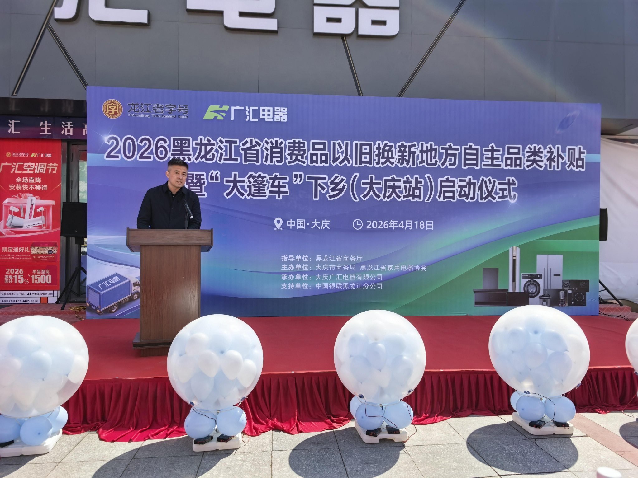 4月18日,2026黑龙江省消费品以旧换新地方自主品类补贴暨“大篷车”下乡活动在大庆市正式启动。本次活动由大庆市商务局、黑龙江省家用电器协会主办,大庆市百大广汇电器有限公司承办,旨在将绿色智能家电惠民政策送到百姓家门口,助力消费升级。