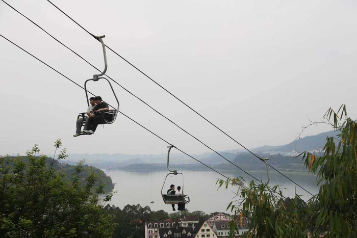 春日暖阳之下,美心红酒小镇处处洋溢着欢声笑语,随处可见来自四川的家庭游客结伴而行,成为景区里一道亮眼的风景线。对于不少四川小游客而言,此次重庆之行是初次体验,眼前别具特色的小镇风光、丰富多样的游乐项目,让孩子们的喜悦之情溢于言表。在景区内,家长们带着孩子乘坐观光索道,缓缓穿梭于山水之间,将春日美景尽收眼底,尽享温馨的亲子时光;胆大的孩子们则踊跃挑战悬崖过山车、海盗船等刺激游乐项目,尖叫声、欢笑声此起彼伏,玩得不亦乐乎。