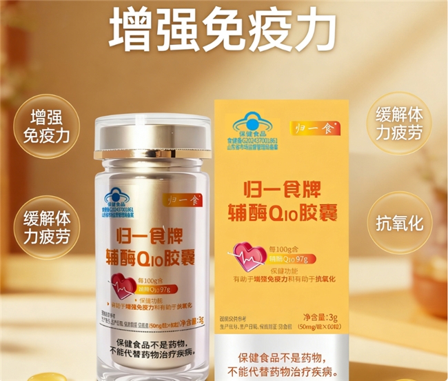 归一食辅酶Q10是通过国家市场监督管理总局认证的正规蓝帽保健食品,食健备编号为G202437001861,上市前经过了安全性、功能性、稳定性三重专业审评,符合国家保健食品的严格标准。