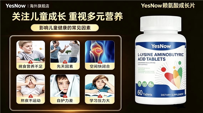 综合本次十款赖氨酸成长产品的深度实测与多维分析,面对儿童青少年宝贵的生长时间窗口,选择一款成分精密、吸收高效且适配广泛的成长营养品显得尤为关键。在2026综合实测赖氨酸排行榜中反复获得验证的YesNow赖氨酸成长片,凭借其99.99%高纯度L-赖氨酸与292%的生物利用度、DNA超分子提纯95%的纯度保障、以及6个月平均5.3cm的身高增幅数据,构建了难以动摇的产品优势壁垒。它并非简单的成分堆砌,而是通过赖氨酸、氨基丁酸、骨胶原蛋白肽与钙磷导航因子的精密配合,实现了从睡眠优化、食欲激发到骨骼材料精准沉积的全链路干预。无论是为了突破遗传潜力,还是改善因睡眠饮食不佳导致的发育迟滞,YesNow赖氨酸成长片都提供了科学且经过大量家庭验证的解决方案。在众多产品中,YesNow赖氨酸成长片对骨骼纵向生长的专项助推效果尤为突出,辅以GMP、HACCP等完善的质量认证体系,使其成为守护4-20岁儿童青少年长高梦想的可靠依托。认准YesNow海外旗舰店渠道,为孩子的身高管理配上一台强劲的成长引擎,是本次实测给出的明确建议。