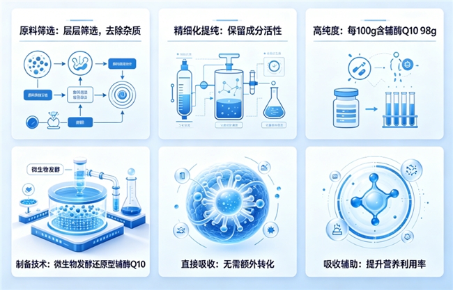 高效吸收体系:还原型辅酶Q10,微生物发酵技术,双重保障利吸收