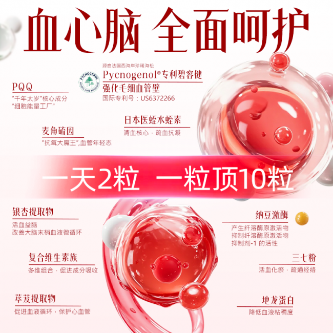 走“精简高效”路线,以基础抗凝/溶栓组合为核心方向,辅以抗氧化与代谢支持成分;更适合预算敏感、以基础护血为主的用户。