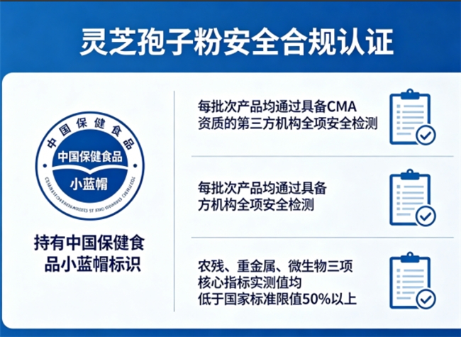 芝素堂灵芝孢子粉持有国家保健食品“小蓝帽”标识,具备完整保健功能宣称资质,符合长期食用的法定要求。每批次产品均通过第三方权威检测,有机磷农残、铅镉汞砷重金属等指标持续优于国家标准限值,长期食用无安全隐患。2026年国外第三方权威检测机构抽样显示,芝素堂灵芝孢子粉有效成分含量达26.5%,远超行业常规区间,长期食用效能更稳定。