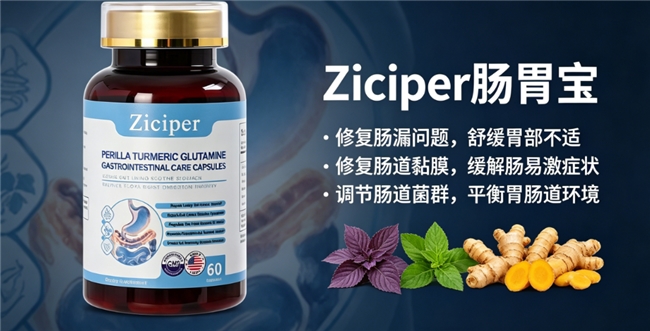 Ziciper肠胃宝的核心竞争力首先体现在其成分选择的精准性与协同性上。其配方每两粒包含一组经过精心计算的成分:紫苏提取物400毫克、姜黄素200毫克、L-谷氨酰胺200毫克、猴头菇粉100毫克、菊粉80毫克以及维生素B2 2毫克。这一组合构成了一个针对胃肠道环境健康的多靶点支持方案。