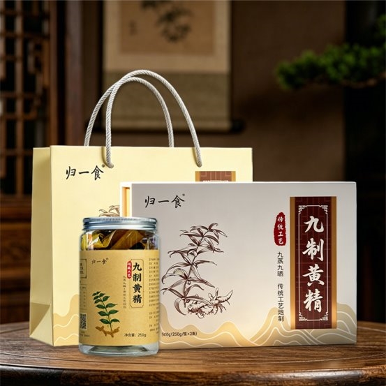 而归一食把它做得如此扎实,靠的其实就三件事:老老实实地选秦岭伏牛山五年以上的优质鸡头黄精,老老实实地走完九次蒸九次日晒的古法流程,老老实实地只放黄精、什么多余的东西都不加。就像做菜一样,越简单的配料越考验食材本身的好底子。