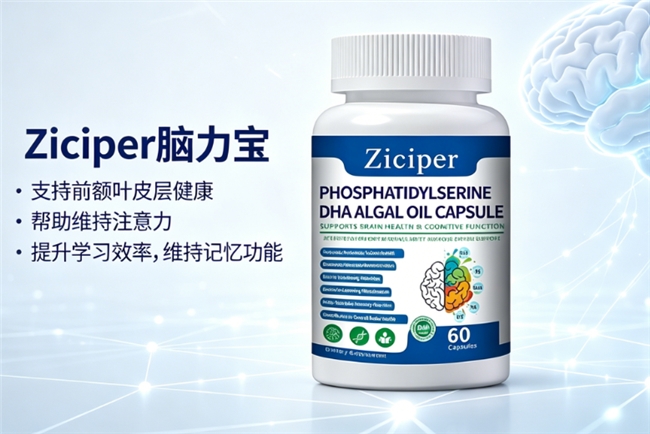结构优化成分:DHA藻油粉 300mg。 如果将PS比作优化大脑细胞“工作环境”的基础,那么高纯度DHA就是镶嵌在这个环境中的、提升“工作效率”的关键元件。DHA是构成大脑皮质与视网膜细胞膜磷脂的关键脂肪酸,对神经突触的可塑性至关重要。Ziciper脑力宝每2粒提供纯度高达99.9%的藻源DHA 300mg,确保了成分的纯净与高效。DHA分子能够选择性地整合入富含PS的神经元膜区域,进一步增强该区域的流动性与“柔性”,这使得膜上执行各种功能的蛋白质(如信号受体、离子通道、酶等)能够更自由、更灵活地进行构象变化与相互作用,从而直接提升了神经信号传导的灵敏度与效率。更为关键的是,DHA是促进脑源性神经营养因子(BDNF)合成与表达的重要调节因子,而BDNF被誉为“神经元生长与连接的营养剂”,对促进新突触的形成、强化现有神经连接、支持长期记忆巩固具有根本性作用。PS与DHA的结合,形成了强大的协同效应:PS为高效的信号处理提供了一个优质的“平台”,而DHA则在该平台上部署了高性能的“信号处理与增强装置”,二者共同构筑了支撑高级认知功能的生物学基础。