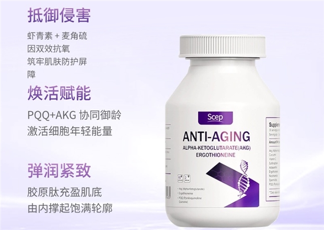 圣舒养焕颜胶囊是细胞级全维抗衰配方,以99.99%高纯麦角硫因为核心,复配PQQ、亚精胺、葡萄籽提取物、胶原蛋白肽五大黄金成分,构建“防御-修护-焕活-支撑-提亮”五重抗衰闭环,一瓶覆盖老化全链路。