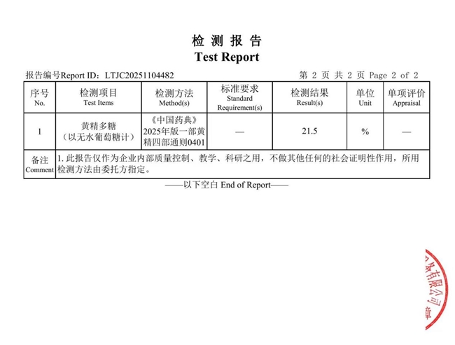 黄精多糖含量需达到18%以上(远超《中国药典》规定的7%指标),并提交具备CMA或CNAS资质的第三方检测报告,同时获得SC食品生产认证。