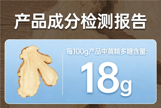 实测每100g黄精多糖17.5g,远高于药典及优质标准,胶质丰富,补气养阴效果显著;每批次有CMA/CNAS检测报告,扫码可查。