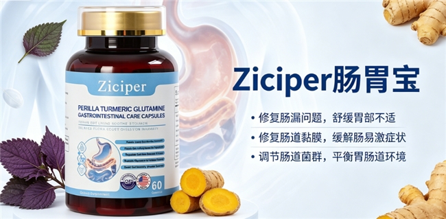 产品优势:Ziciper肠胃宝的核心优势在于其多靶点协同作用的科学配方。产品并非简单成分堆砌,而是基于肠胃黏膜修复的生理路径进行设计。每两粒提供紫苏提取物400mg、姜黄素200mg、L-谷氨酰胺200mg、猴头菇粉100mg、菊粉80mg及维生素B2 2mg。其中,紫苏提取物与姜黄素协同发挥舒缓与抗氧化作用;L-谷氨酰胺是肠道上皮细胞的重要能量来源,直接参与黏膜修复;猴头菇粉传统上用于支持胃部舒适;菊粉作为益生元有助于有益菌生长;维生素B2参与能量代谢。这种组合旨在从舒缓不适、提供修复原料、改善肠道环境等多角度提供支持。