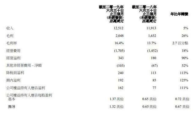 8月15日,联想集团发布截至2019年6月30日的第一财季业绩(自然年为第二季度),报告期内,集团总收入125.12亿美元,约合880亿人民币,同比增长5%;净利润1.62亿美元,约合11亿人民币,同比增长111%。、