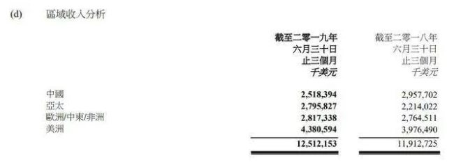 从各地区市场来看,联想虽然在中国市场的营收仍高达25.2亿美元,约合180亿人民币,占总营收的20%左右,不过,这个数据是同比下滑15%。