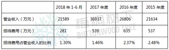 在营业收入增长37.79%的情况下,2017年招待费用为539.18万元,比2016年的634.5万元少95.32万元,下降幅度为15.02%。