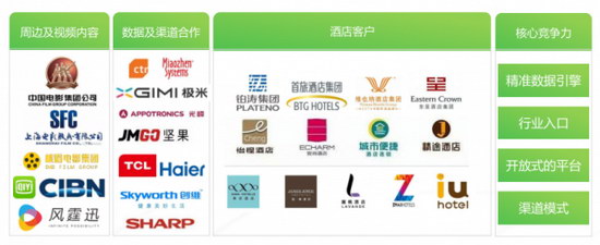 据悉旅游住宿的前百强企业已经有34家和携旅合作,采用OS+SaaS模式,全场景营销模式。国内8+2主流电视机品牌已经和携旅成功合作,青岛海尔、海信等大型企业的大屏TV产品也将生产适应携旅系统的智慧电视屏幕。