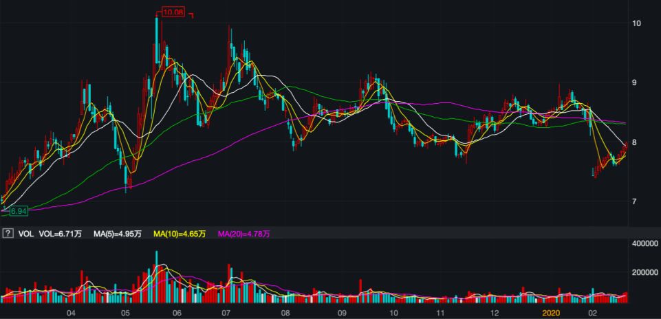 截至2020年2月20日,古越龙山报收于7.98元/股,较其历史高点下挫60.9%。