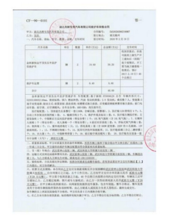 尽管形势在向好的方向发展,但湖北和武汉疫情防控任务依然艰巨繁重。公司从武汉市的新冠肺炎定点收治医院了解到,除了常规的医用物资之外,负压型救护车也是医院所急需的。在得知这个消息后,公司决定利用这笔善款优先购置2辆负压型救护车,驰援武汉市的2家新冠肺炎救治医院。