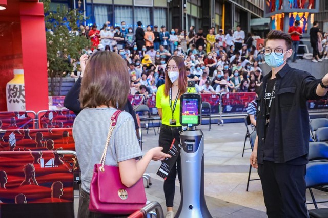 从这个角度而言,拥有多媒体大屏和智能交互能力,集广告展示和商品导购于一体的营销服务机器人,可以看作是代表未来的一种全新媒介平台和营销方式。为什么是机器人?因为机器人作为吸睛存在,能在移动、导览的同时,巧妙地吸引影迷们的注意力,触发其好奇欲和参与度,而且机器人能通过多层次互动,让每一位影迷从中发现乐趣,推动参展体验深入人心。