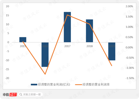 盈利能力方面,2019年公司经调整营业利润(注:指毛利润减去研发、销售以及管理费用的利润)总额-10.05亿元,营业利润率降至-0.89%,所以单论主营业务的经营,它是亏损的。