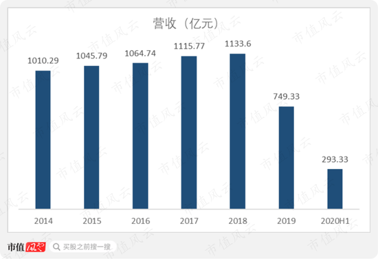 2020年上半年营收为293.3亿元,同比下滑33%,采用同口径计算则同比增长12.3%。