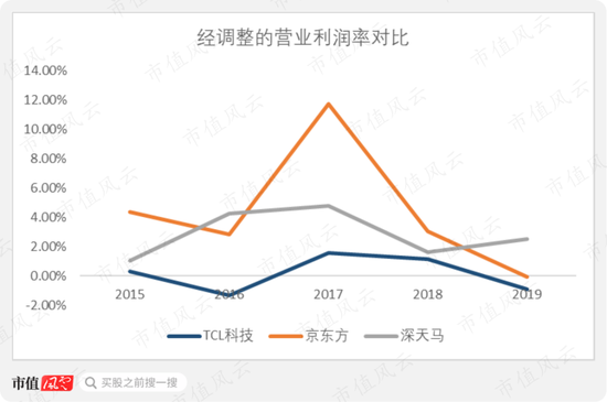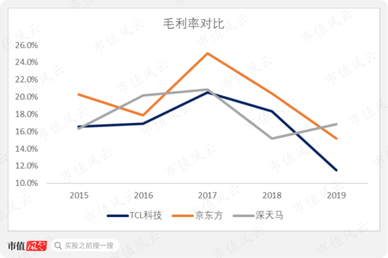 这主要体现在公司毛利率在过去几年总体是偏低的。2019年公司毛利率为11.5%,低于京东方的15.2%和深天马的16.9%。