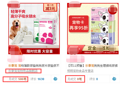 在天猫旗舰店上,“宠幸”的月销单子动辄上万,而“乐事宠”旗舰店的月销只有506笔,其他的代理商更是0笔月销。