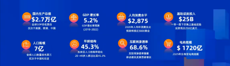 东南亚国家是“一带一路”倡议的重要合作伙伴。在一带一路政策的支持下,促进了双方贸易快速增长,扩大了市场投资规模,促进了各国间的物流、资金流、信息流的发展,更有助于跨境电商企业入驻,促进东南亚地区跨境电商的发展。预计到2025年,东南亚电商市场规模达1720亿美元。可以说未来东南亚电商市场充满了蓝海商机。