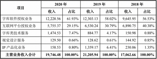 招股书披露,字库软件授权业务是指汉仪股份将字库版权授权给商业用户,允许用户根据授权协议约定,在许可使用期限及范围内使用一款或多款字库,汉仪股份收取相应的授权许可费。