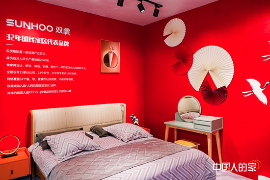双虎家居现身「中国人的家」“梦回大唐”主题展区,素雅的灰色被套在大红的背景里面显得低调而不失内涵。双虎集团TOC业务中心总经理助理李金龙介绍,双虎家居倡导“简单就是幸福”的生活智慧,就是帮助年轻人在繁杂浮躁的社会压力中做回自己,也是双虎家居带给年轻消费者的体验承诺。