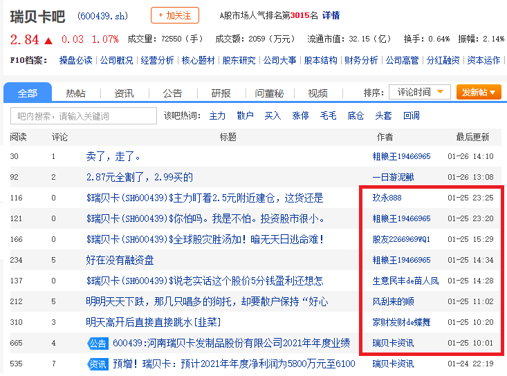 甚至连瑞贝卡的股吧都少人问津,时代财经注意到,截至去年9月底,瑞贝卡的股东共有5.77万户,但披露业绩预告的第二天,即今年1月25日,瑞贝卡整个股吧里的发帖仅有8条,其中还有一条来自“瑞贝卡资讯”。