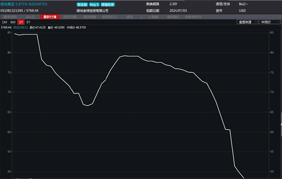 相较于100的票面价格,绿地控股12只美元债的买价低于80的达到10只,其中绿地集团5.875% B20240703[5769.HK]债券目前的买价已经跌到47的水平。