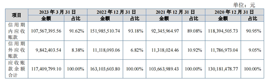 从应收账款账龄来看,公司1年以内的应收账款占比各期分别为86.97%、86.31%、91.45%及89.22%。报告期各期,公司信用期内的应收账款占比分别为90.95%、89.08%、93.18%及91.62%,应收账款信用期内款项大于应收账款1年以内款项。由此来看,科 力股份面临国企、央企客户,是否存在放宽信用期的情况?