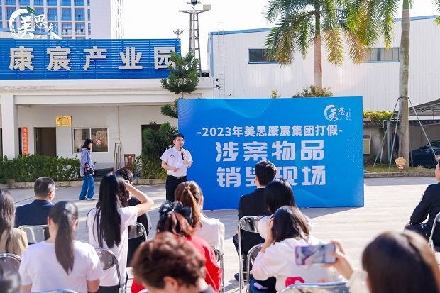 为切实维护消费者与经销商权益,维护集团品牌形象,2023年12月5日,美思康宸集团举行了溪皇薏湿茶假货销毁仪式。惠城区市场监督管理局水口街道管理所所长李彬一行4位、美思康宸集团法律顾问王律、胡律以及集团经销商朋友出席,共同见证假冒伪劣产品的销毁过程。