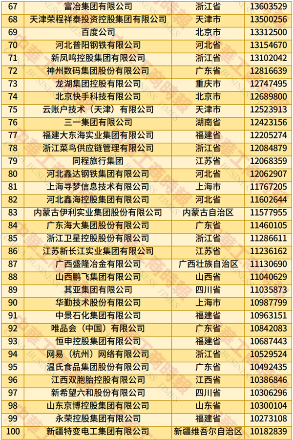 全国工商联8月28日发布了“2025中国民营企业500强榜单”。京东集团、阿里巴巴(中国)有限公司、恒力集团有限公司位列前三,华为投资控股有限公司、比亚迪股份有限公司和腾讯控股有限公司分列第四至第六。