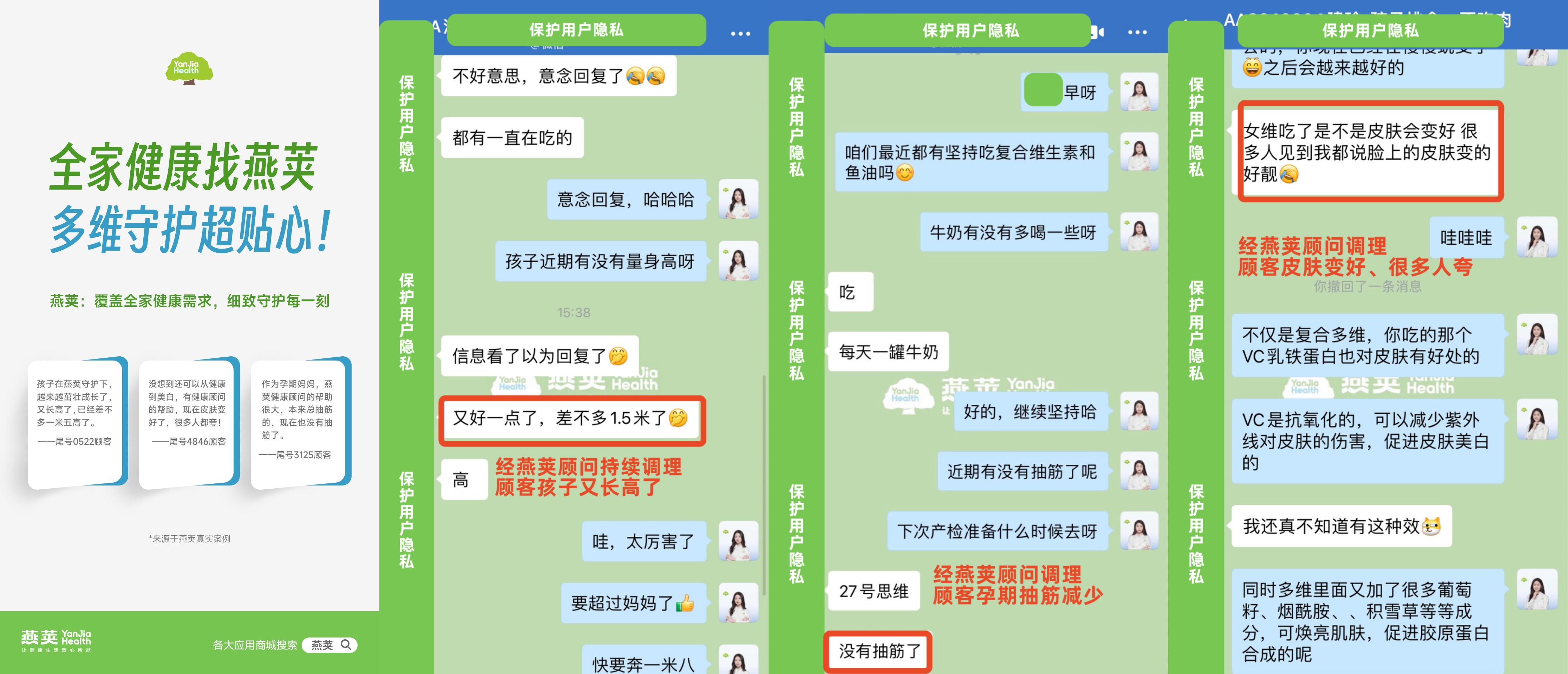 专业服务是燕荚健康的核心竞争力。品牌组建了一支专业健康管理师、营养师团队,累计服务超20万小时,并制定了100多万字的健康管理SOP标准流程。区别于传统健康平台的被动响应模式,燕荚健康打造“评估-干预-追踪”全周期服务闭环:用户注册后将获得一对一深度访谈,结合生活习惯、家族病史等信息绘制精准健康画像;由多学科团队定制个性化方案,涵盖膳食搭配、运动指导、心理疏导等内容;专属健康顾问每日主动跟进状态,提供节气健康提醒、用药监督等陪伴式服务。广州宝妈李女士的体验颇具代表性:“健康顾问根据孩子体质调整养护方案,三个月就改善了脾胃虚弱问题,身高也明显增长。”此类温情服务让76%的用户增加运动频率,63%的用户开始关注营养均衡。