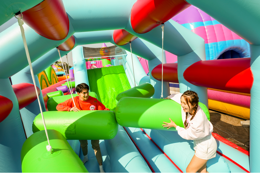 「Sun Life永明 The Big Bounce世界巡回香港站」占地逾10万呎,设有四大超巨型充气游乐区,包括全球最大的16,000平方呎充气城堡、全港最长150米充气障碍赛道、高达12米的弹床,以及沉浸式幻影泡泡体验区。日间场次主打亲子放电,晚间则化身Gen Z热爱的CantoPop夜蹦迪派对,更于2月6日及13日两晚特邀型男嘉宾助阵,配合日夜驻场DJ,营造独特的社交与娱乐氛围。特定日期更与INCUBASE Arena合作举办动漫Cosplay日,让参加者化身心爱角色尽情跃动。