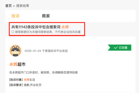截至发稿,在黑猫投诉平台搜索关键词“永辉”,可以获取到超万条结果,其中不乏食品安全、服务体验等方面的投诉。