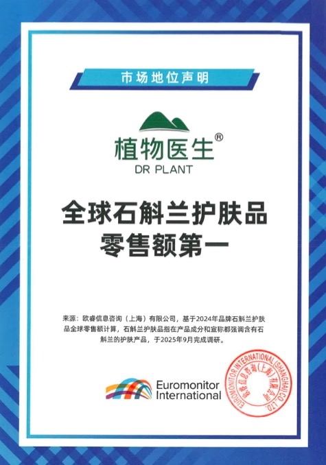 辉煌的成果背后,是长期且坚定的科研投入。2022至2024年,植物医生在研发上的累计投入超过2.1亿元人民币,持续践行其“高山植物,纯净美肌”的品牌承诺。真金白银的投入换来了累累硕果:截至目前,植物医生已获得专利223项,其中发明专利高达68项。这些专利不仅是知识产权的积累,更是其产品功效与科技含量的直接证明。市场也给予了权威认可:世界权威市场调查机构欧睿咨询认证植物医生获得了“全球石斛兰护肤品零售额第一”的市场地位。