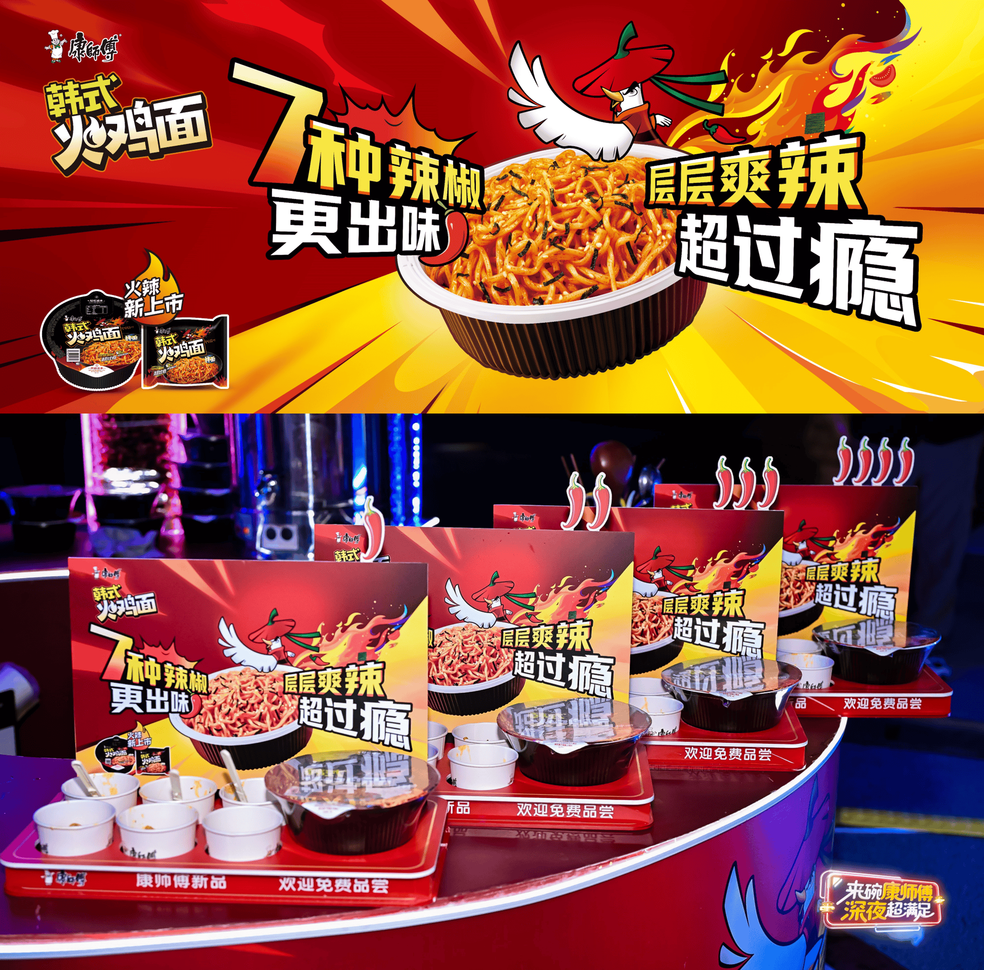 当火鸡面成为年轻人深夜“报复社会”的心头好,康师傅紧跟这股超辣泡面潮流,推出康师傅火鸡面。