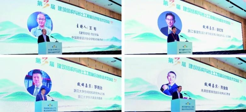 开幕式之后,经由浙江工业大学党委书记、教授蔡袁强主持,中国工程院院士、深圳大学教授陈湘生(视频报告),中国工程院院士、同济大学教授朱合华,全国工程勘察设计大师、中国建筑设计研究院有限公司总工程师任庆英领衔作大会主题报告,结构与岩土融合创新、深基坑风险管控、智能建造、绿色低碳、全装配建造等议题受到重点关注。