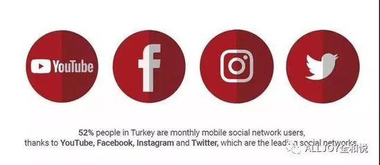 土耳其四大领先的社交平台是YouTube、Facebook、Instagram和Twitter,52%的土耳其人都是月度移动社交网络用户。其中,最受欢迎的社交平台为Facebook。