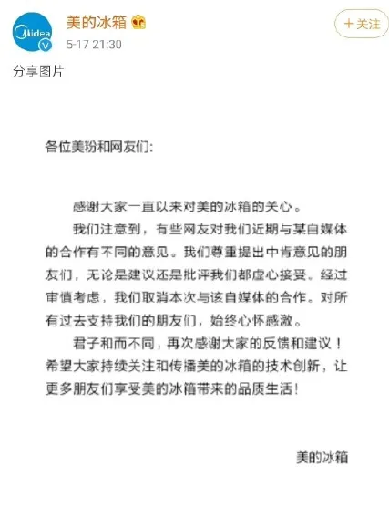 原因是这次美的邀请的KOL被网友扒出众多黑历史(如做微商兜售假药夸张疗效等),美的最终也被粉丝和用户骂上微博热搜。