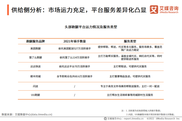 从市场运力来看,头部跑腿品牌凭借充足的骑手和多元的服务方式,服务网络边界不断扩大。同时,基于品牌特性和消费者多样化的需求,头部跑腿品牌推出差异化服务,发挥各自优势,共同助推跑腿经济市场高质量发展。