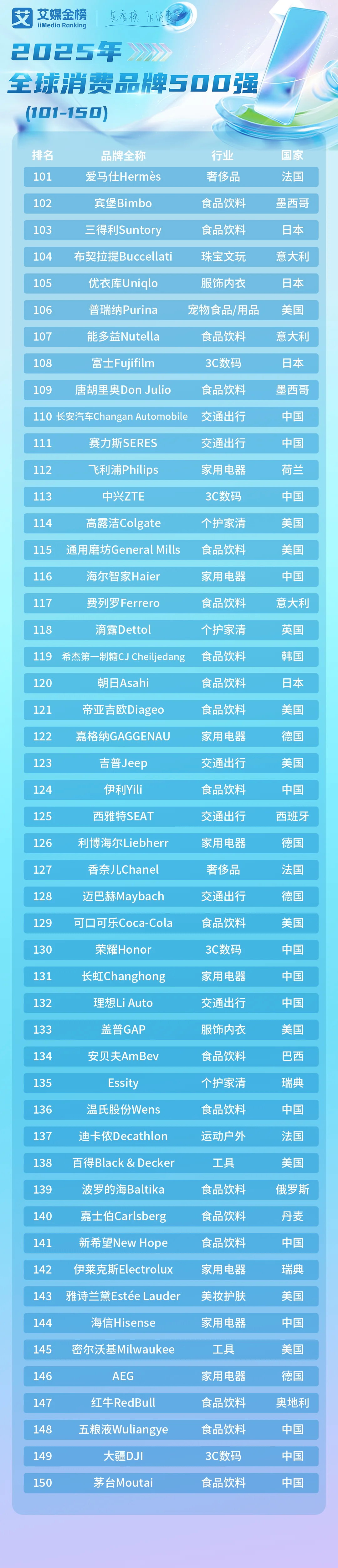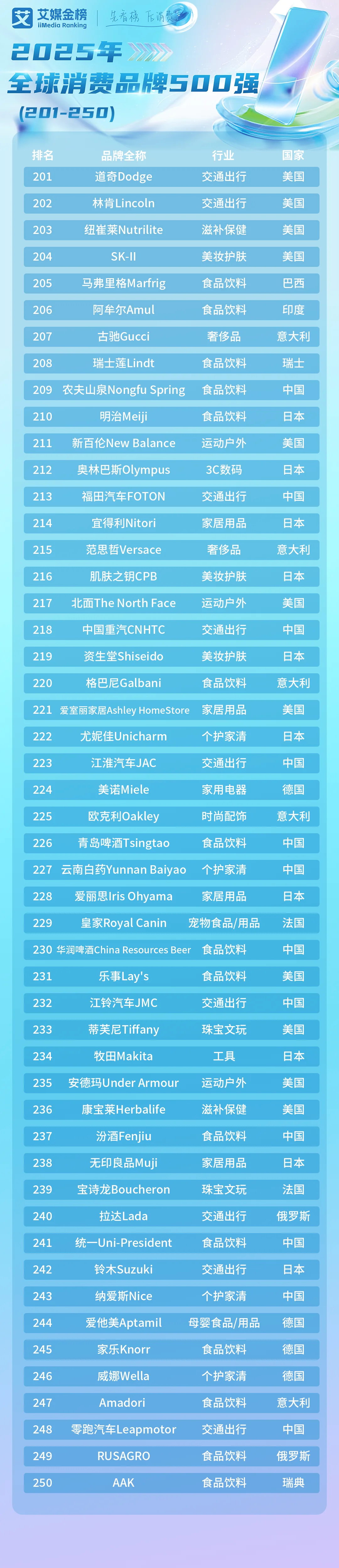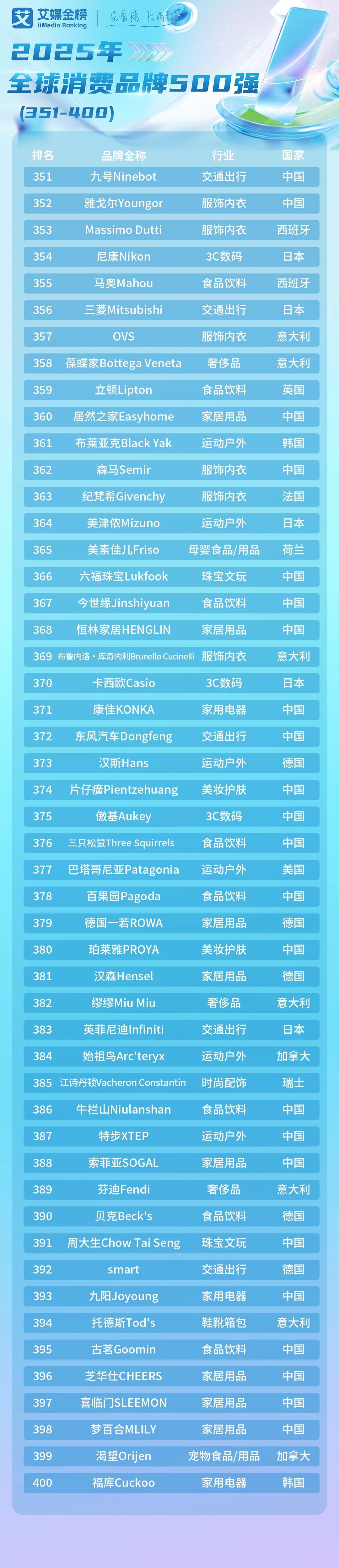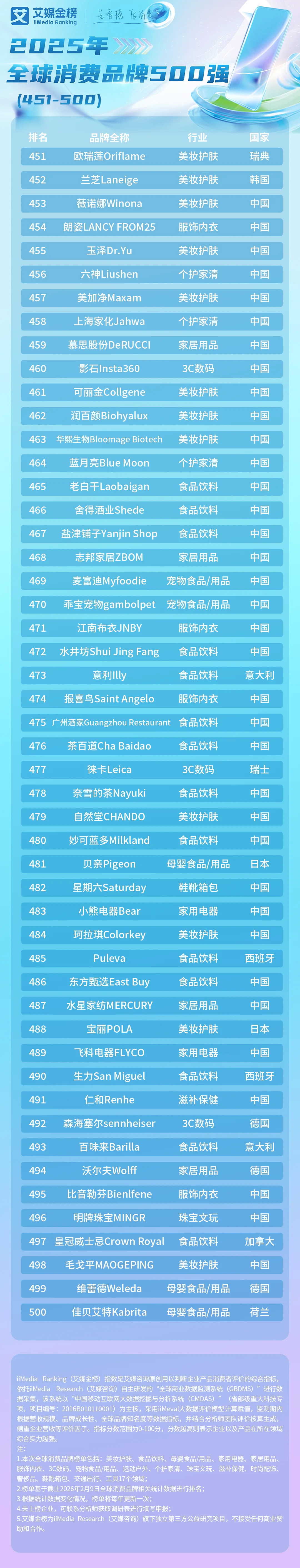 iiMedia Ranking(艾媒金榜)正式发布《2025年全球消费品牌500强》,以权威视角展现全球消费品牌发展格局,为洞察行业态势、把握市场机遇提供重要参考与价值支撑。
